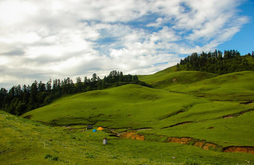 Dayara Bugyal is known for its wide open meadows. In winter, these meadows turn into white, soft snow fields.